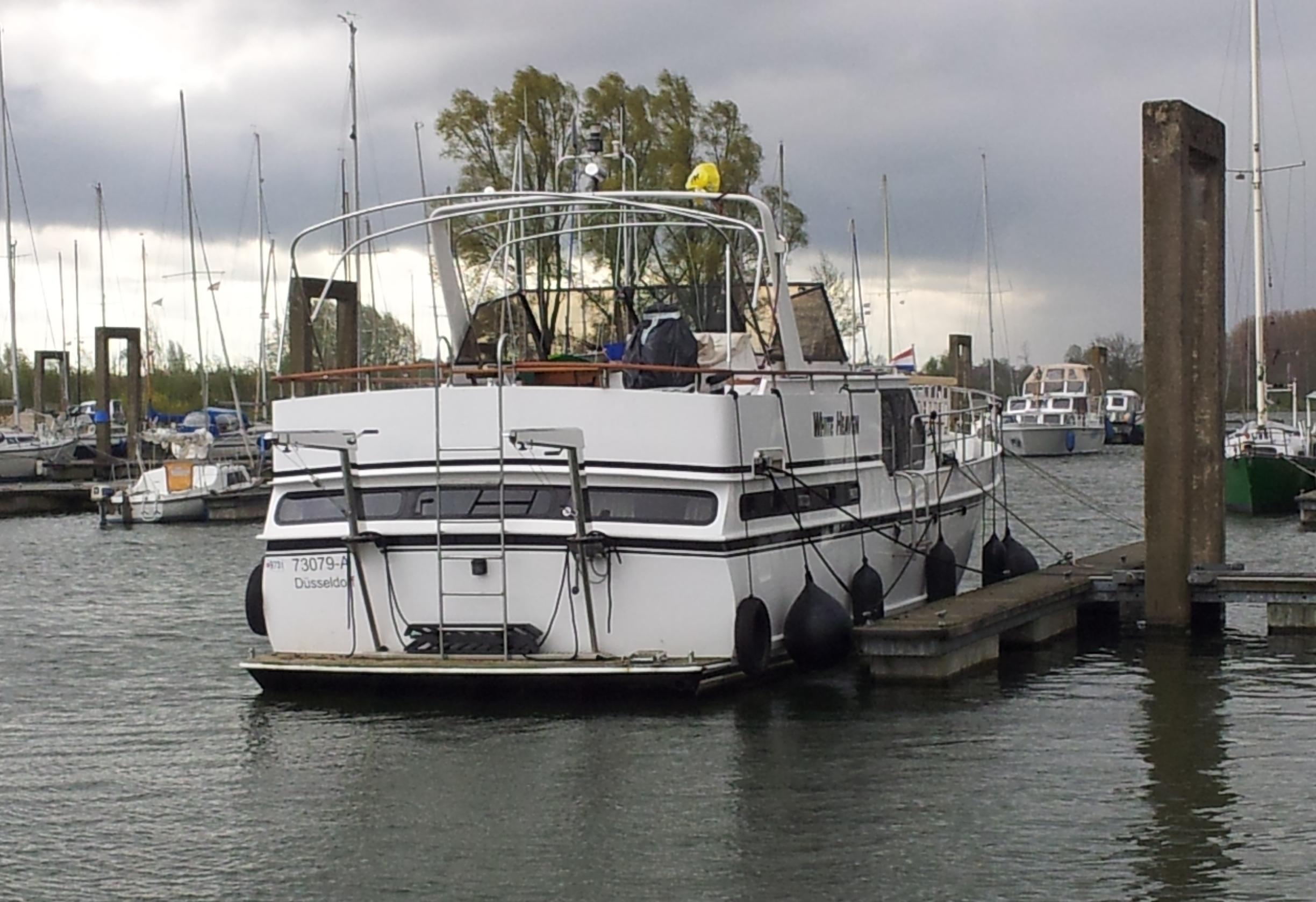 Am 14.4. haben wir das Schiff nach Roermond verlegt, da wir für das gesamte Achterdeck ein neues Cabrioverdeck bekommen. Dazu wird ein komplett neues Gestänge in 30mm bzw. 22mm Edelstahlrohr hergestellt und dann mit einem 3-lagigen, schwarzen Cabrioverdeckstoff bespannt. Der vordere Teil des Verdecks kann mittels zwei Teleskope bis zu 50cm abgesenkt werden. Die Herstellung, Lieferung und Montage übernimmt die Firma Zeilmakerijkoopman aus Roermond/Horn. Wir hoffen, dass die Arbeiten bis zum 4.Mai abgeschlossen sind, da wir am 11.Mai mit dem Schiff nach Berlin wollen.